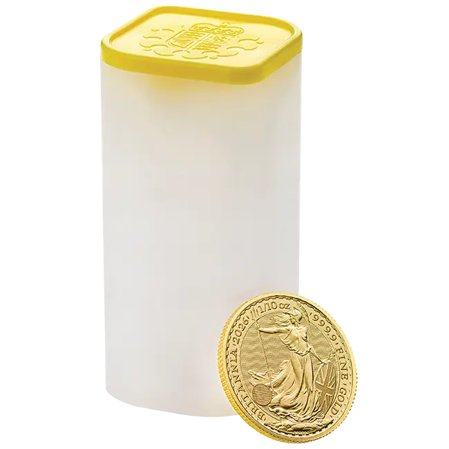 2026 Great Britain 1/10 Oz Gold Britannia (BU) Roll/Tube of 25